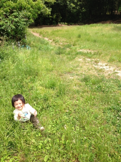 里山歩きしてきました。始めての山の小道。おぼつかない足取りでしたが、頑張って歩いてくれました。積った枯れ葉を枝でいじったり、虫を触ったり、松ぼっくりを見て「なんこれ?」と言ったりして楽しそうでした。