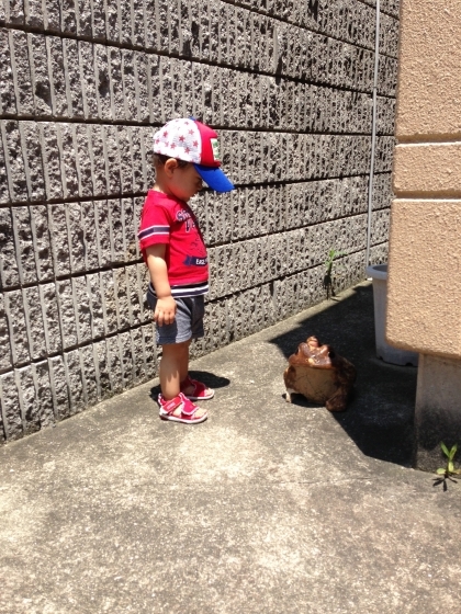 カエルがおんぶしてるのが、気になって気になって仕方ないようです。笑