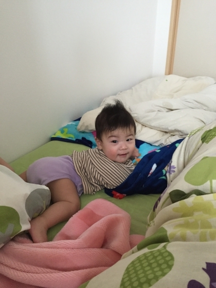 朝起きたらパジャマのズボンが脱げて、どこかに行ってました。