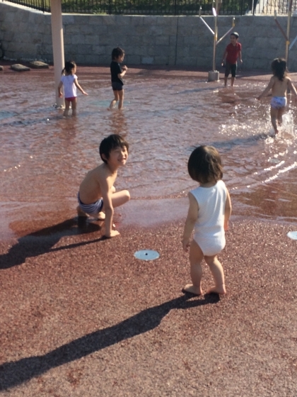 こどもたちの楽しそうな声とじゃぶじゃぶの音が響き、暑い夏に涼しさを運ぶ広場ですよ!