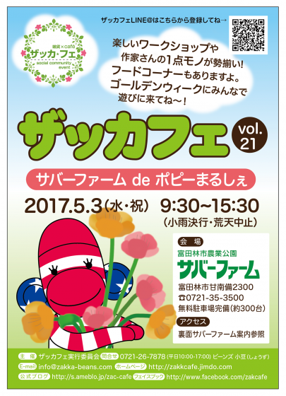 5月3日ゴールデンウィーク富田林農業公園サバーファームでポピー祭り開催時にザッカフェVol.21 ポピーまるしぇを開催します。ハンドメイドの雑貨はもちろんの事、体験ワークショップ、美味しいフードブースが大集合!