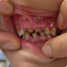 虫歯になりやすい部位は奥歯の噛む面の溝、前歯の唇側に多くみられます