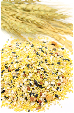 雑穀米:白米に玄米、粟、ひえ、きび、ハトムギ、大麦、黒米、赤米、アマランサス、キノアなど数種類の雑穀を混ぜて炊くご飯のことです。食物繊維やたんぱく質、カルシウム、鉄分などのミネラルが豊富に含まれています。