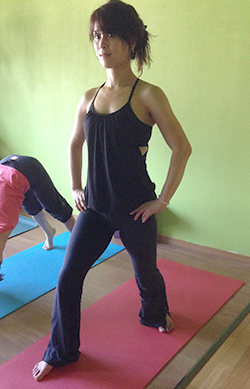 戦士のポーズで、歩き方を美しく上半身のコリをとり、お尻を引き締めます。