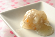すりおろしたレンコンに、細かく刻んだ具材(ニンジン、しいたけなど)を混ぜて、適当な大きさにして蒸し上げます。お好みでだしのあんをかけてお召し上がりください。レンコンもちやあんかけに味をつければ立派な夕食の一品にも…
