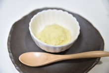 ゆがいたじゃがいもはつぶして、月齢に応じて少し硬いようなら豆乳などで柔らかくしましょう。